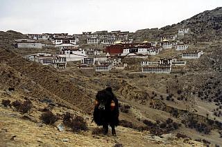 Un cours trajet d'autobus à partir de Lhassa nous amènent au monastère de Ganden, situé à plus de 4500 mètres d'altitude. La route en lacet n'en fini plus de monter et une (heureuse!) crevaison nous permet de marcher le dernier kilomètre jusqu'au monastère en compagnie de quelques yaks qui errent ça et là. La marche est lente mais pas difficile et nous croisons des moines, jeunes et vieux, dans la rue de terre étroite menant vers la place centrale en face du monastère.