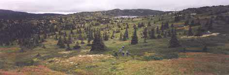| Les distances sont trompeuses dans la taïga espacée. Les montagnes à gauche sont à 4 kilomètres de nous. |