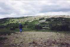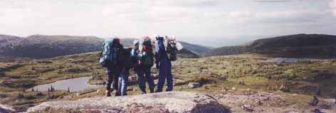 | Nous faisons le point pour la dernière fois de la journée. Le lac en bas sera notre site de campement pour la nuit. |